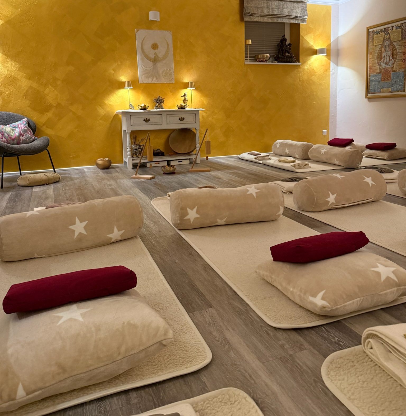 Die heilsamen Klänge unterstützen Körper und Geist dabei, Spannungen loszulassen und in einen natürlichen Zustand der Entspannung zu gleiten. Jede Einheit ist liebevoll abgestimmt auf die aktuelle Zeitqualität und lädt Dich dazu ein, Dich neu zu zentrieren, Deine Energie zu harmonisieren und Deine innere Stille wieder zu spüren.
