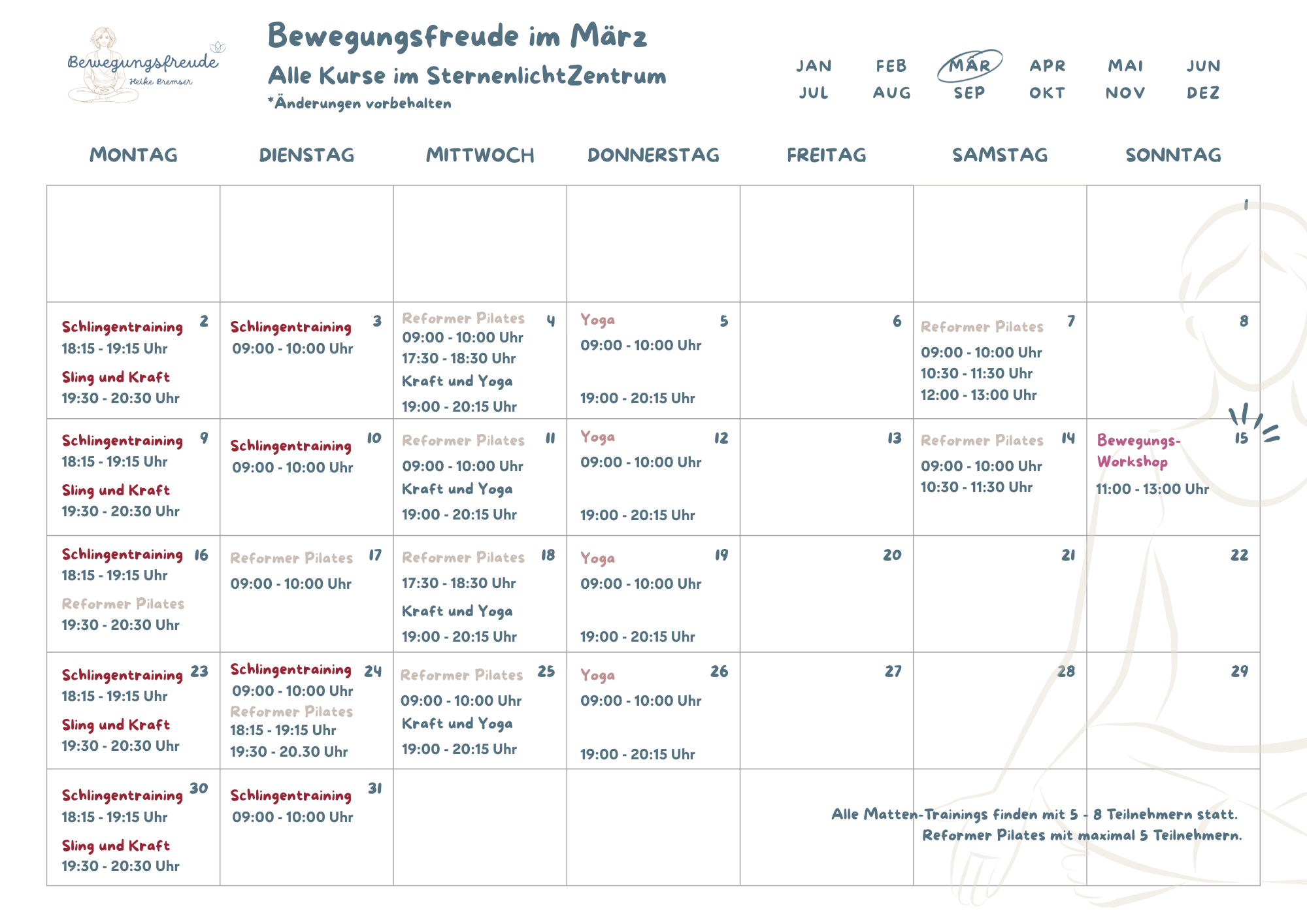 1. Samstag im Monat Reformer Pilates